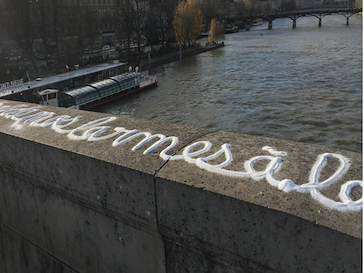Vie en Ephad, attentats de Charlie Hebdo, loi Macron, perte d’intimité du travail de l’artiste, battles esthétiques, militantisme résistant et esthétique, phénomène des moutons de Panurge, joie de peindre dans un Monoprix, expérience de la guerre, élections présidentielles sont autant d’occasions d’intrusions poétiques et vitales dans chaque virgule de notre réel.