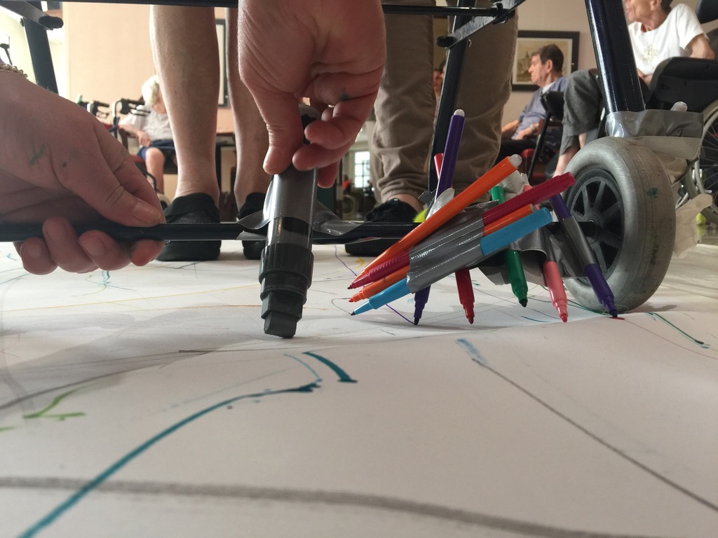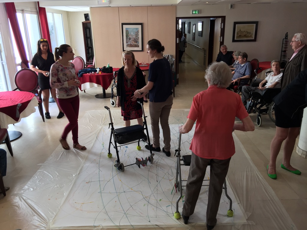 2018 Conversation dessinée et Dessin aux déambulateurs Pavillon Vendôme, Clichy, France et à l’atelier à Montreuil avec les résidents des Adrets, en collaboration avec Eugénie Bachelot Prévert à l’occasion de l’exposition Prévert en famille.