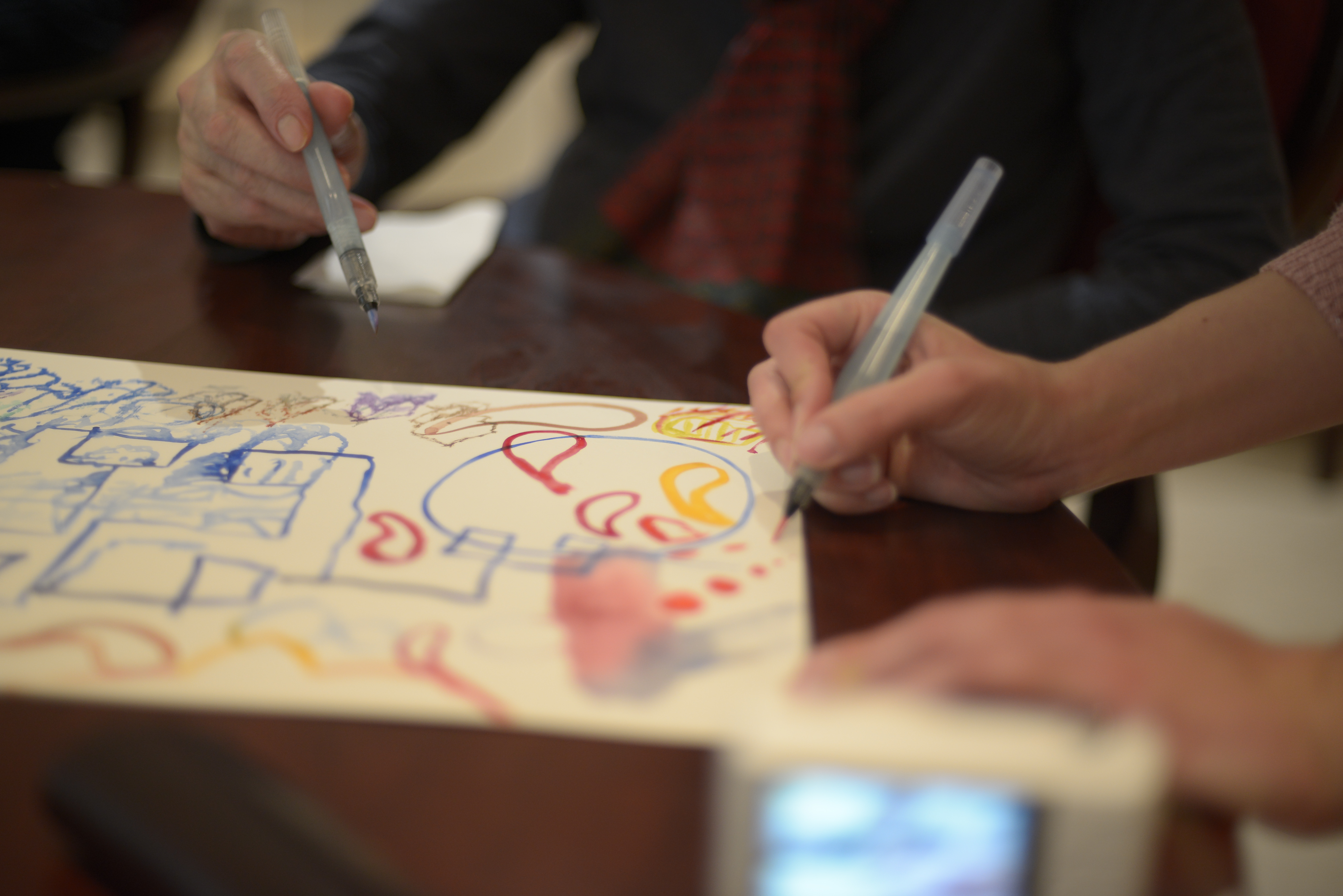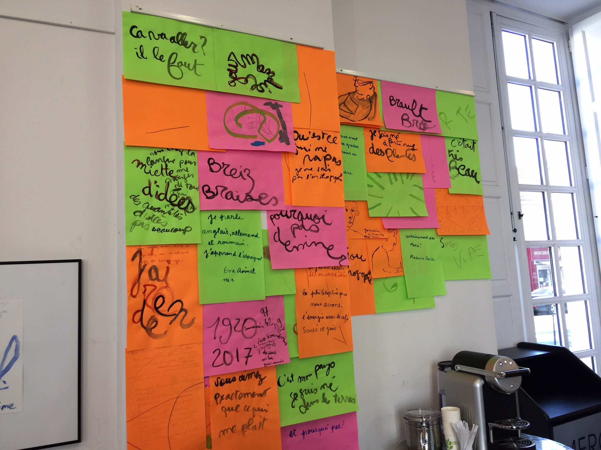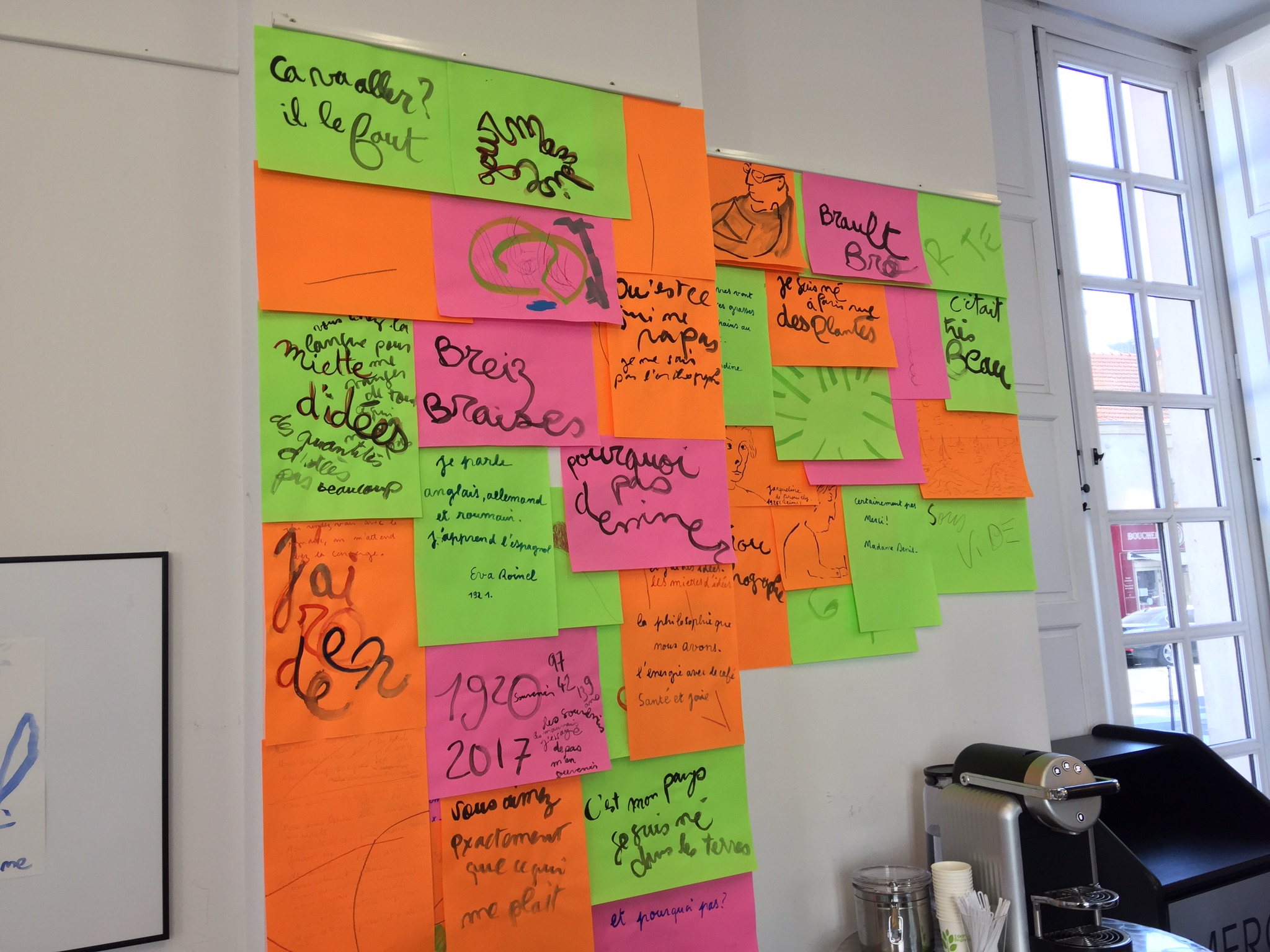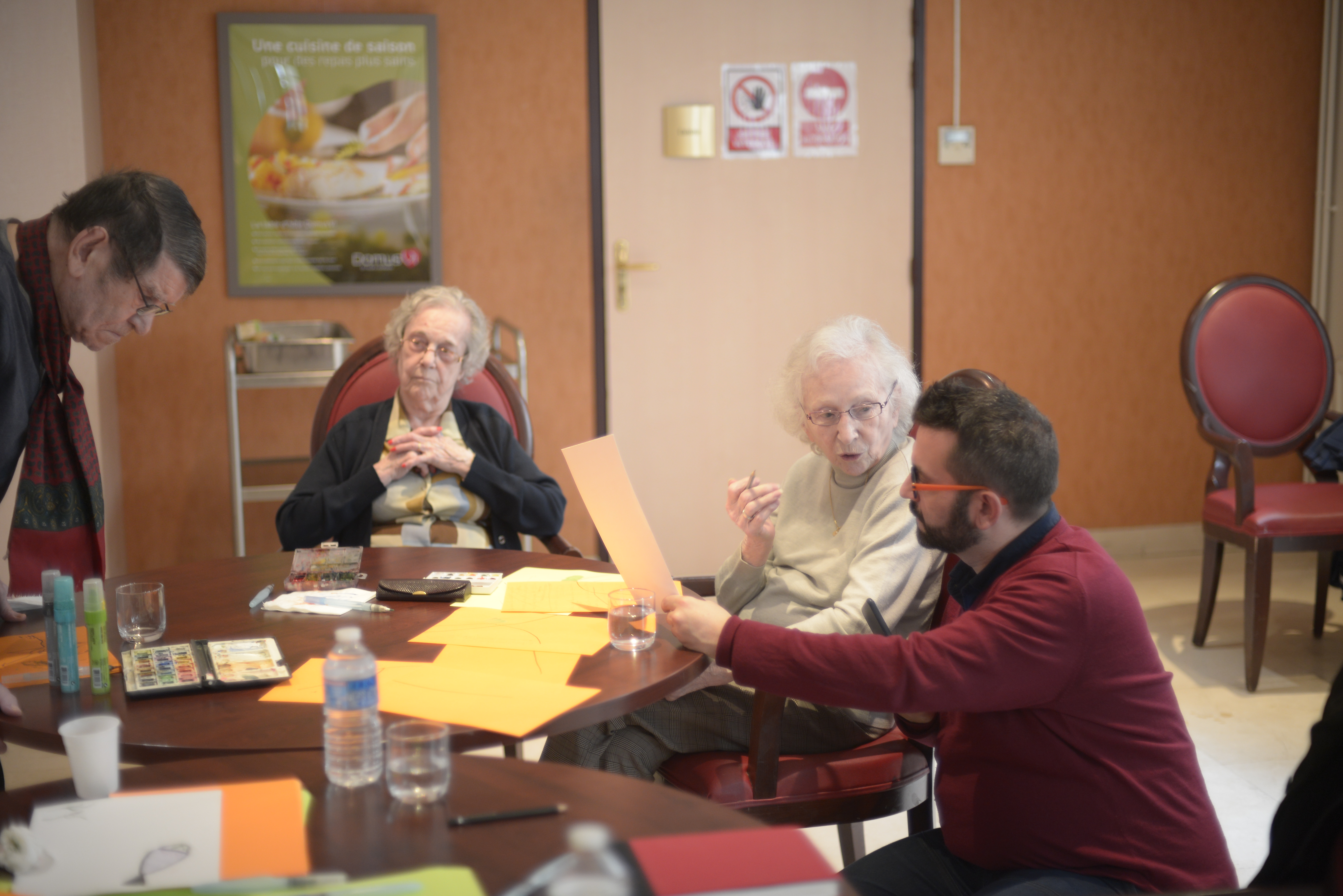 2018 Conversation dessinée et Dessin aux déambulateurs Pavillon Vendôme, Clichy, France et à l’atelier à Montreuil avec les résidents des Adrets, en collaboration avec Eugénie Bachelot Prévert à l’occasion de l’exposition Prévert en famille.